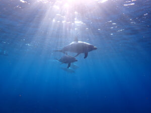 夕方にはとてもきれいな夕日を眺めることができます。大渡海岸の沖側にはカメがよく見られるスポットもあり、運が良ければタイドプールでウミガメに出会えるかも!大きな浜で一日のんびりシュノーケリングが楽しめる場所です。少し泳げば大きな丸いサンゴがあり、その周りを色とりどりの魚が群れています。