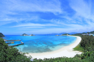 大渡海岸は、沖縄本島南部・糸満市にある綺麗な海岸。手前の大きなタイドプールは深くても水深3~5m。手前は波が来ることもなく、穏やかなことが多く、シュノーケリングを始めるにはぴったり。地面は白い砂地で、太陽が差し込むと抜群に明るい水中を楽しめます。シュノーケリング初心者に最適なスポットです。