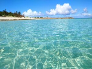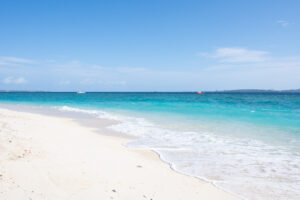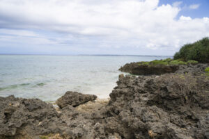 水納島東部に位置する、その名の通り「名前のないビーチ」です。約100mの砂浜が広がっていてその周囲は岩礁が多く、美しい景観が広がっています。遠浅な海なので、泳ぐよりも磯遊びをしながら生物観察などがおすすめです。