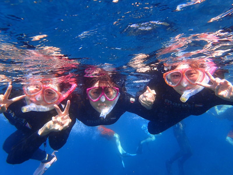 なお6~8月は水温20~26℃、9~11月は26~20℃とだんだん下がってきます。いずれの時期も、それほど水温は高くないので、ウエットスーツを着用したほうが快適にシュノーケリングが楽しめます。