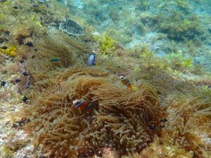 比較的穏やかな入り江で、シュノーケリング初心者に向いています。水深2~3mのタイドプールで、クマノミに会うことも。見られる魚種は他のポイントに比べるとやや少なめですが、落ち着いてシュノーケリングの練習ができる環境です。